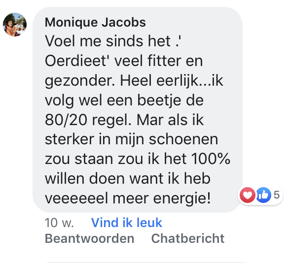 "Wat ik zo fijn vind aan OERvoeding is dat ik eigenlijk niets mis en alleen maar heel veel lekkere dingen eet. Als je geen dieet wilt volgen, lekker wilt eten en toch ook gezond; dan is het OERvoeding Programma zeker een aanrader! "